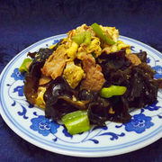 肉、木耳、鸡蛋、植物油、生抽、花椒、葱、料酒、盐、糖、蚝油、姜。