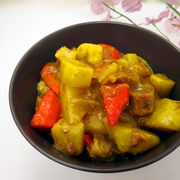 长茄子、肉、白菜、植物油、鸡蛋、面粉、生抽、蚝油、盐、香油。
