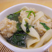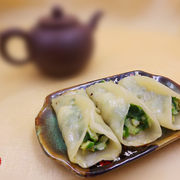 饺子皮、菠菜、鸡肉、鸡蛋、葱、花椒粉、盐、面包糠、淀粉、蚝油、姜。