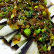 长茄子、肉、芹菜、葱、植物油、盐、花椒粉、蚝油、生抽。