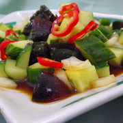 黄瓜、松花蛋、青椒、洋葱、红椒、陈醋、糖、盐、香油。