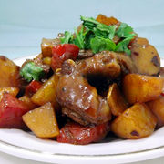 肉、木耳、干豆腐、土豆、洋葱、胡萝卜、鸡蛋、植物油、糖、料酒、盐、醋、味精、淀粉。