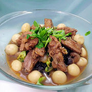 排骨、鹌鹑蛋、香菇、油菜、西兰花、木耳、枸杞、大枣、红酒、糖、盐、花椒粉。