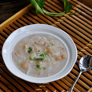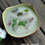 瘦猪肉、大米、松花蛋、油、精盐、料酒、生姜。