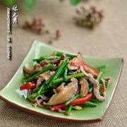 韭菜苔、瘦猪肉、食油、精盐、香菇、味极鲜酱油、红椒、花椒。