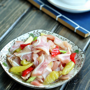 猪五花肉、食油、精盐、料酒、花椒粉、五香粉、酱油、八角、陈醋、青菜、小葱、生姜。