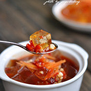 海藻凉粉、大蒜、剁椒、胡萝卜咸菜、香醋。