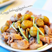 新鲜鸡腿、生栗子、油、精盐、生姜、小葱、生抽、大蒜。