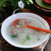 瘦猪肉、香菇、粥底、小油菜、精盐、小葱、花椒油、生姜、味极鲜酱油。