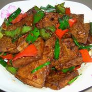 豆腐、蒜苗、青、红椒各一个、蒜、 酱油、豆瓣、白糖、盐。