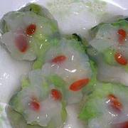 猪肉馅、白菜叶、虾仁、银耳、青蒜苗、枸杞、豌豆、淀粉、葱、盐、味精。