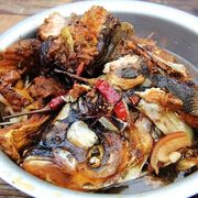 水库鱼、五花肉片、八角、花椒、桂皮、干辣椒、料酒、盐、油、老抽、糖。