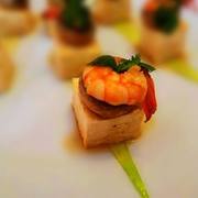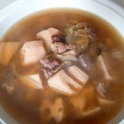 豆腐、口菇、虾、葱姜片、水淀粉、油、生抽、盐。