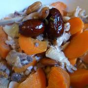 仔鸡、红枣、杏仁、胡萝卜、葱、姜。