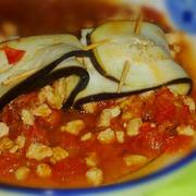 鸡肉、茄子、西红柿、葱、橄榄油、盐。