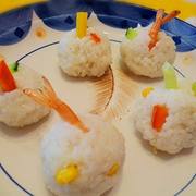 大米饭、酸奶、嫩玉米、彩椒碎、黄瓜、大虾、盐。