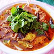 牛里脊、大白菜、香菜、姜片、蒜、干辣椒、花椒、麻椒、八角、淀粉、料酒、水。
