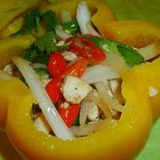 鸡胸肉、青红辣椒、彩椒、盐、黑胡椒、橄榄油。