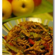 鸡肉、红甜椒、芹菜。