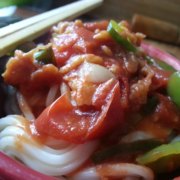 面条、西红柿、鸡蛋、青椒、葱花、姜丝、蒜片、盐、花椒、味精、鸡精。