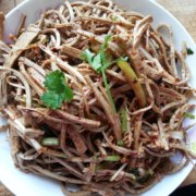 高碑店五香豆腐丝、葱丝、香菜、盐、味精、鸡精、鸡汁、仙贝露调味汁、麻椒、香油、白胡椒粉、油泼辣椒、白糖、酱油。