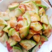 西葫芦、西红柿、葱、蒜、盐、酱油、醋、鸡精、白糖、味精、花椒。