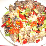 猪坐垫肉、灯笼辣椒、泡仔姜、蒜苗、干辣椒、食盐、味精、老抽、料酒、醪糟、花椒。