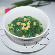 荨麻叶、鸡汤、熟鹰嘴豆、蒜、橄榄油。