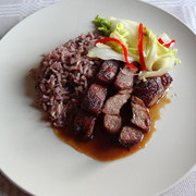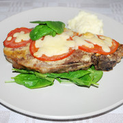 猪排、西红柿、法式芥末、芝士粉、橄榄油、盐、黑胡椒粉、橄榄油。