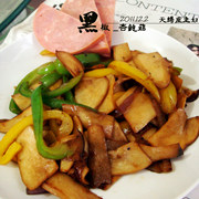 杏鲍菇、青椒、彩椒、洋葱、蒜、盐、生抽、黑胡椒、植物油。