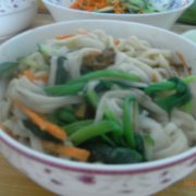豆干、腊肉、鸡蛋、面、菠菜、黄瓜、胡萝卜、葱末。