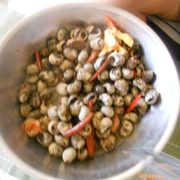 韭菜、螺丝肉、蒜、辣椒、料酒、盐、鸡精。