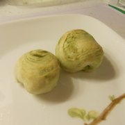 绿茶粉(油酥材料)、糖(油酥材料)、无盐黄油(油酥材料)、面粉(油酥材料)、面粉(水油皮材料)、水(水油皮材料)、无盐黄油(水油皮材料)、白砂糖(水油皮材料)、白砂糖、莲子。
