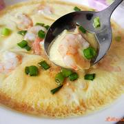 鲜虾、鸡蛋、油、盐、料酒、姜、葱、蒸鱼豉油。