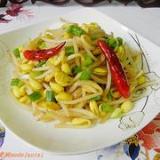 黄豆芽、油、盐、料酒、鸡精、葱、辣椒。