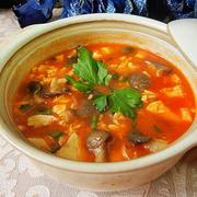 秀珍菇、豆腐、油、盐、鲜抽、姜、葱、胡椒粉、鸡精、麻油、水淀粉、番茄酱。