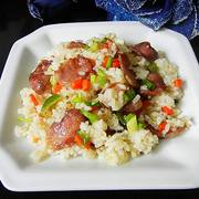 米饭、香肠、胡萝卜、青椒、油、盐、葱。