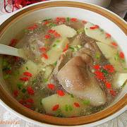 咸蹄膀、猪腿肉、春笋、料酒、姜、葱、枸杞。