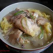 青鱼头、大白菜、平菇、油、盐、料酒、姜、葱、鸡精、胡椒粉、蒜。