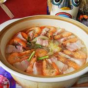 咸肉鲜虾白菜煲