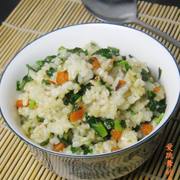 米饭、胡萝卜、青菜叶、油、盐、鸡精。