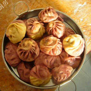 面粉、紫薯泥、精肉、韭菜、白菜、海米、木耳、酵母、清水、姜末、自制花椒水、料酒、香油、酱油、精盐。