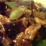 茄子、西红柿、青椒、葱、蒜、盐、糖、太太乐蔬之鲜、老抽。