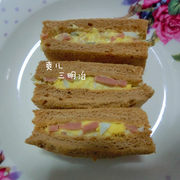 面包切片、白煮蛋、火腿、酸黄、丘比沙拉酱。