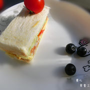 面包、鸡蛋、奶酪、香肠、生菜、小番茄、沙拉酱、黑胡椒。