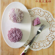 白色月饼皮、紫色月饼皮、紫薯泥、奶油奶酪、牛奶、葡萄干、芸豆、蓝莓果酱、砂糖、奶粉、朗姆酒、黄油。