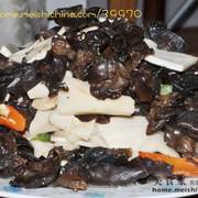 木耳、鸡腿菇、青椒、油、料酒、食盐。