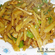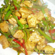 肉、生粉、料酒、青椒、酱油、盐、鸡精。