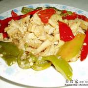 鸡脯肉、料酒、生粉、胡椒粉、青红辣椒、豆鼓、酱油。