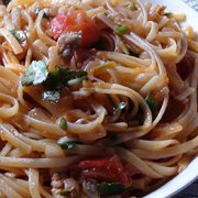 意大利面、番茄、洋葱、大蒜、肉末、番茄酱、色拉油、盐、黄酒。